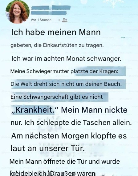 Als er die Tür öffnete, standen da sein Vater und seine beiden Brüder – alle in ernster Miene, der Blick fest, als wäre etwas Unausweichliches passiert. Ihre Anwesenheit, in dieser Art und Weise, war ungewöhnlich, fast unheimlich. Wir sahen sie selten, noch seltener ohne Ankündigung. Und doch war klar: Etwas war nicht in Ordnung.