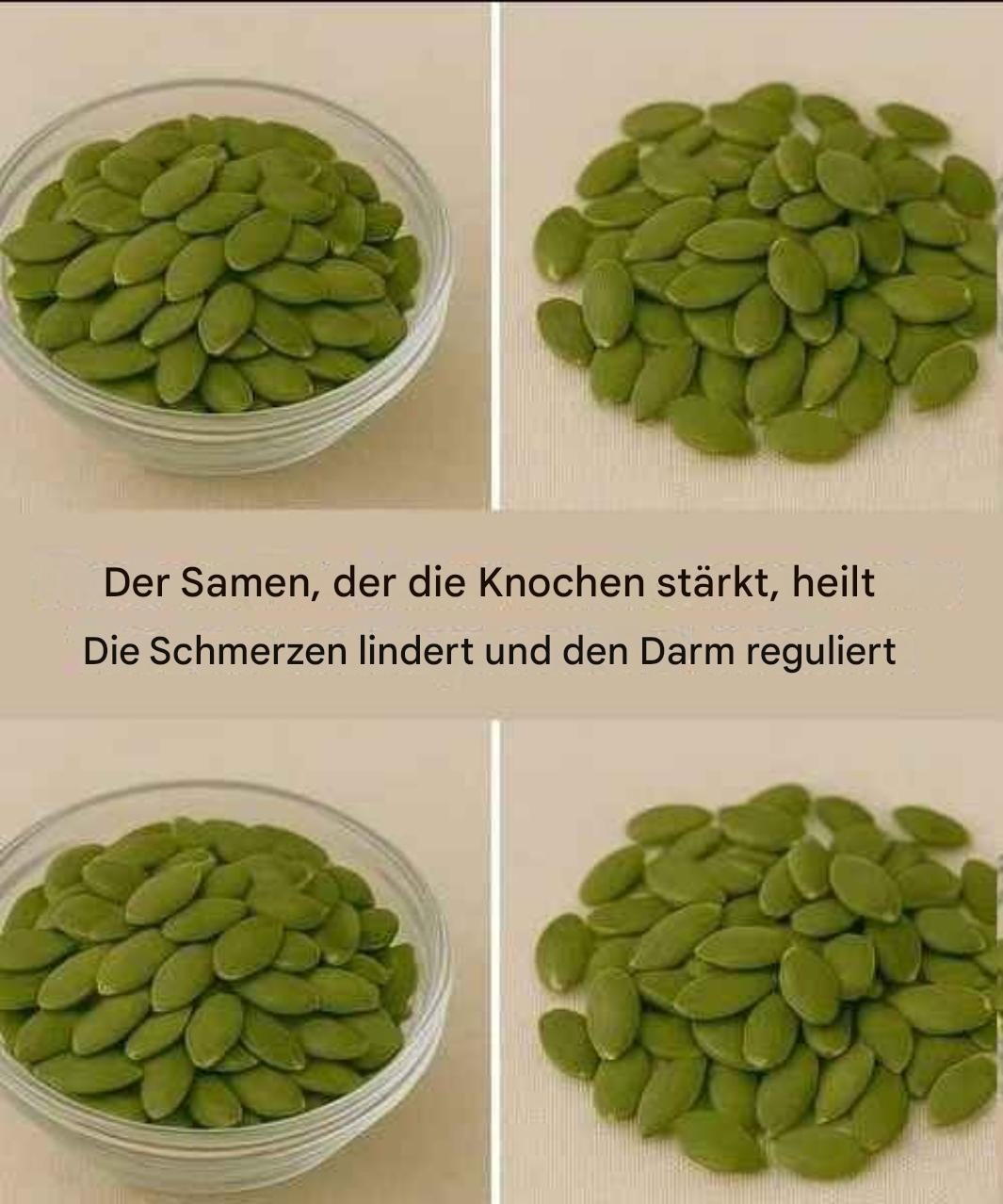 Wenn du nach einer natürlichen Möglichkeit suchst, deine Knochen stark zu halten, Schmerzen zu lindern und deine Verdauung zu unterstützen, dann sind Kürbiskerne genau das Richtige! Diese kleinen Samen sind reich an Kalzium, Magnesium, Zink und entzündungshemmenden Verbindungen, die die Knochengesundheit, Gelenkbeschwerden und die Verdauung fördern können.