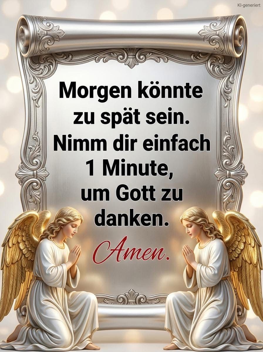 “Morgen könnte zu spät sein.” Diese Worte sind kein Grund zur Angst, sondern eine Einladung, den gegenwärtigen Moment zu schätzen. Das Leben ist kostbar und flüchtig. Die Engel zeigen uns, wie einfach es ist: Innehalten, die Hände falten und das Herz öffnen.
