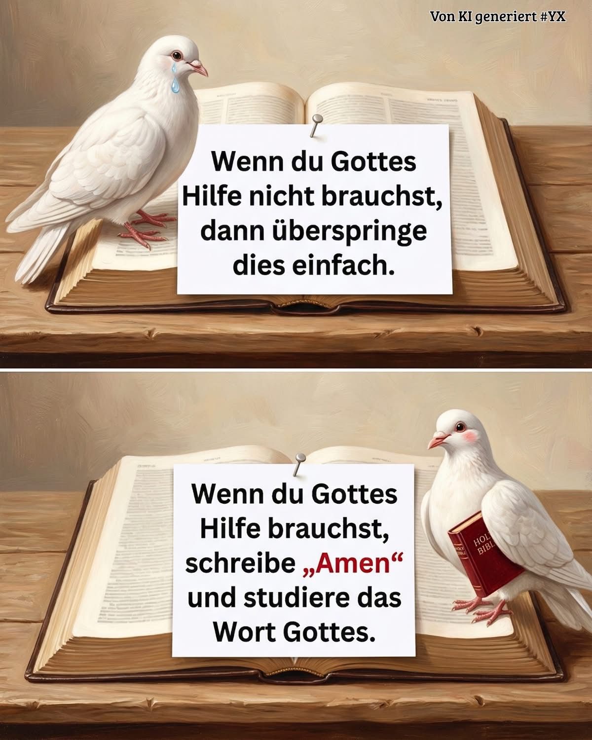 Manchmal begegnen uns im Alltag Zeichen, die uns daran erinnern, dass wir nicht alleine sind. Das Bild der weißen Taube, das Symbol des Friedens und der Hoffnung, lädt uns ein, kurz innezu halten. Inmitten von Stress und Sorgen ist das Wort Gottes wie ein Anker für die Seele.