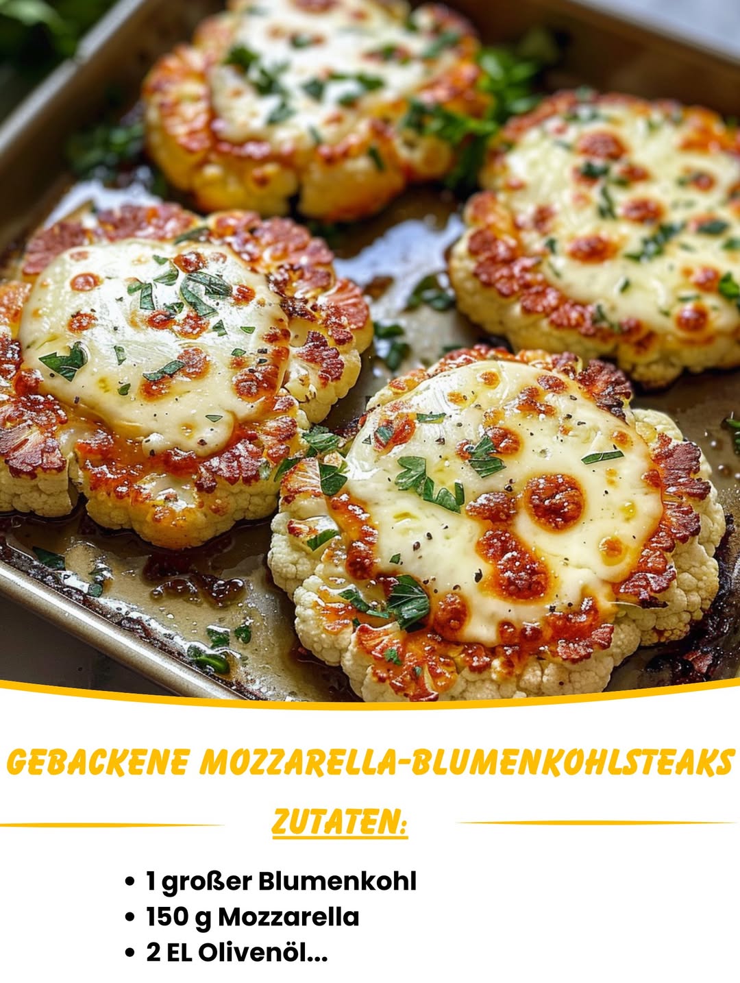 Willkommen zu einem kulinarischen Highlight, das Herz und Gaumen erfreut! Unsere gebackenen Mozzarella-Blumenkohlsteaks vereinen die zarte Knackigkeit von Blumenkohl mit der cremigen Würze von geschmolzenem Mozzarella – ein einfaches, aber raffiniertes Gericht, das sowohl Vegetarier als auch Genießer begeistert. Ob als Hauptgericht oder herzhafte Beilage, dieses Rezept bringt Abwechslung auf den Tisch und überzeugt mit frischen Zutaten und unkomplizierter Zubereitung. Lassen Sie sich von diesem aromatischen Geschmackserlebnis verführen und entdecken Sie, wie köstlich gesunde Küche sein kann!