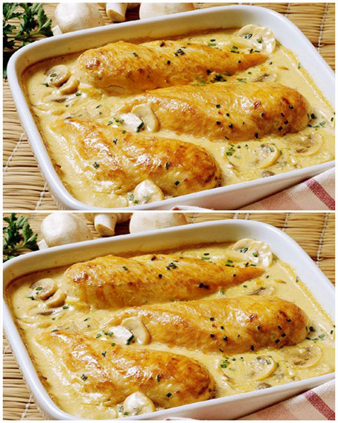 Gratinierte Hähnchenfilets in cremigem Champignonrahm – einfach unwiderstehlich!