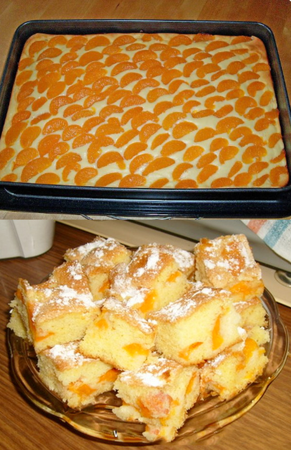 1. Einfach mal die ersten 6 Zutaten gründlich verrühren, den Teig auf ein Backblech streichen. Dann die Mandarinen verteilen.