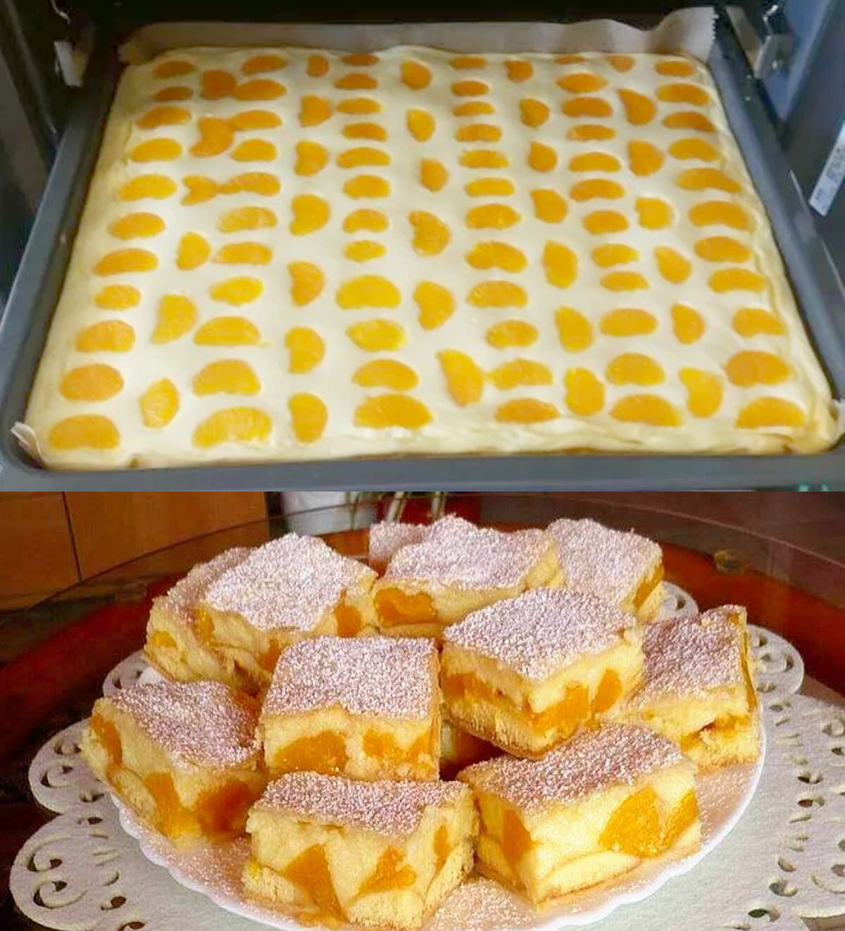 1. Einfach mal die ersten 6 Zutaten gründlich verrühren, den Teig auf ein Backblech streichen. Dann die Mandarinen verteilen.