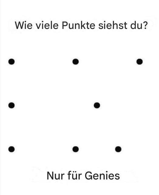 Sie haben es wahrscheinlich geschafft, 8 Punkte zu finden, aber wir möchten Ihnen sagen, dass es noch viel mehr gibt, wenn Sie also immer noch nicht in der Lage waren, sie alle zu identifizieren, das Einzige, was wir Ihnen sagen können, ist, sich nicht von den “logischen Fallen” leiten zu lassen, die es bei dieser Art von visuellen Rätseln gibt. Alles, was Sie brauchen, ist viel Konzentrationskraft.