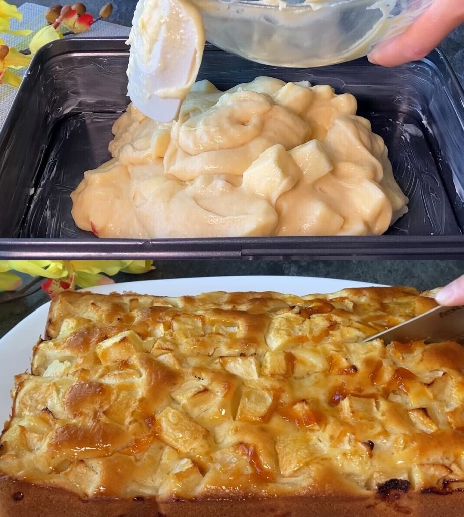 3. Zum Schluss den Kuchen mit den Apfelstücken in die Springform gießen und 40–50 Minuten auf dem mittleren Regal backen. Schnell und lecker!