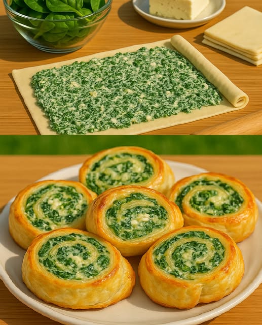 Diese köstlichen Blätterteigröllchen mit Spinat-Feta-Füllung lassen sich ganz einfach zubereiten: