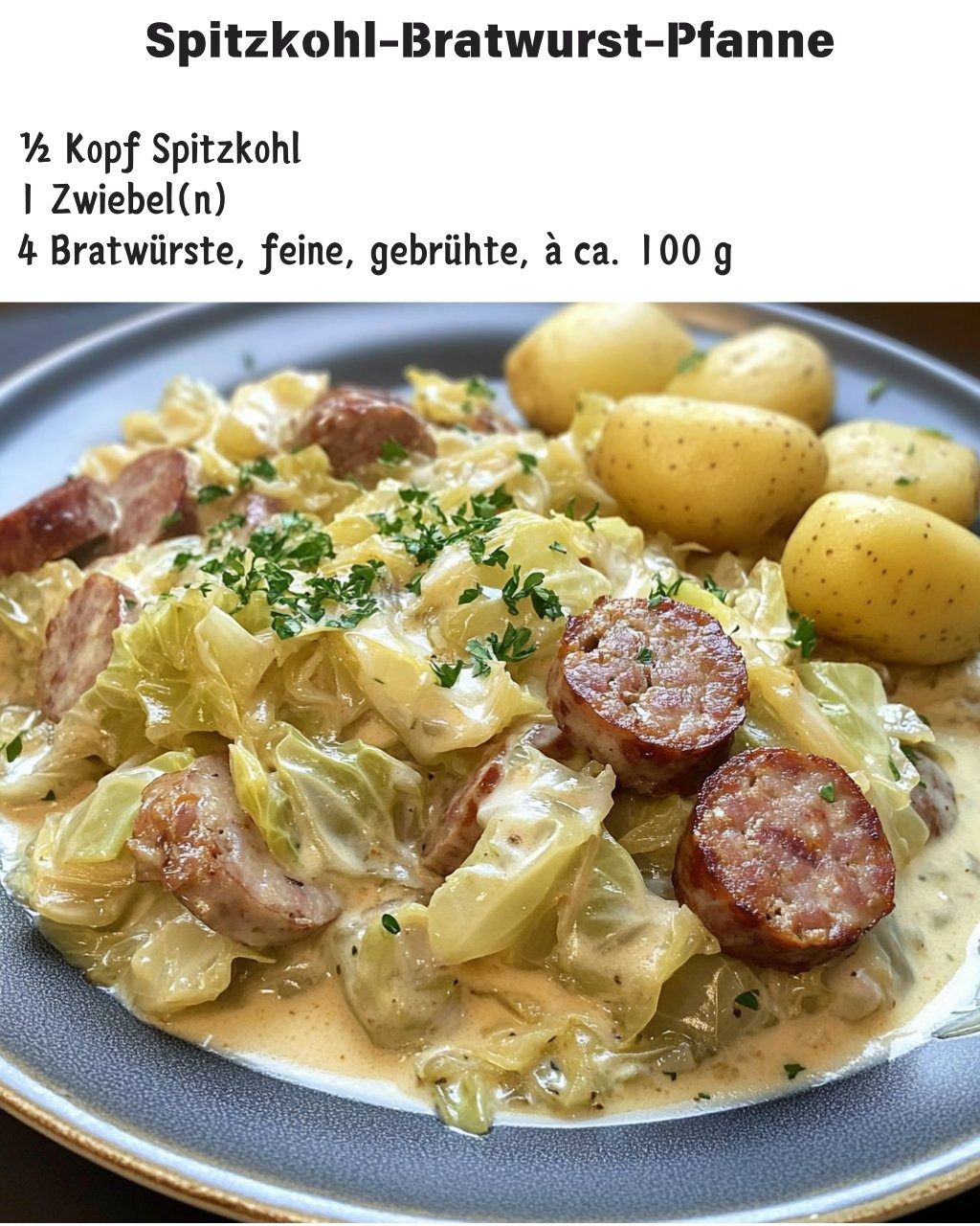 Spitzkohl ist eine besonders feine und milde Kohlsorte, die schnell gart und ein angenehmes Aroma hat – ganz ohne die typische Schärfe mancher anderer Kohlsorten. In Kombination mit den knackig angebratenen Bratwurstscheiben entsteht ein rustikales Pfannengericht, das nicht nur unglaublich lecker schmeckt, sondern auch in weniger als 30 Minuten auf dem Tisch steht.