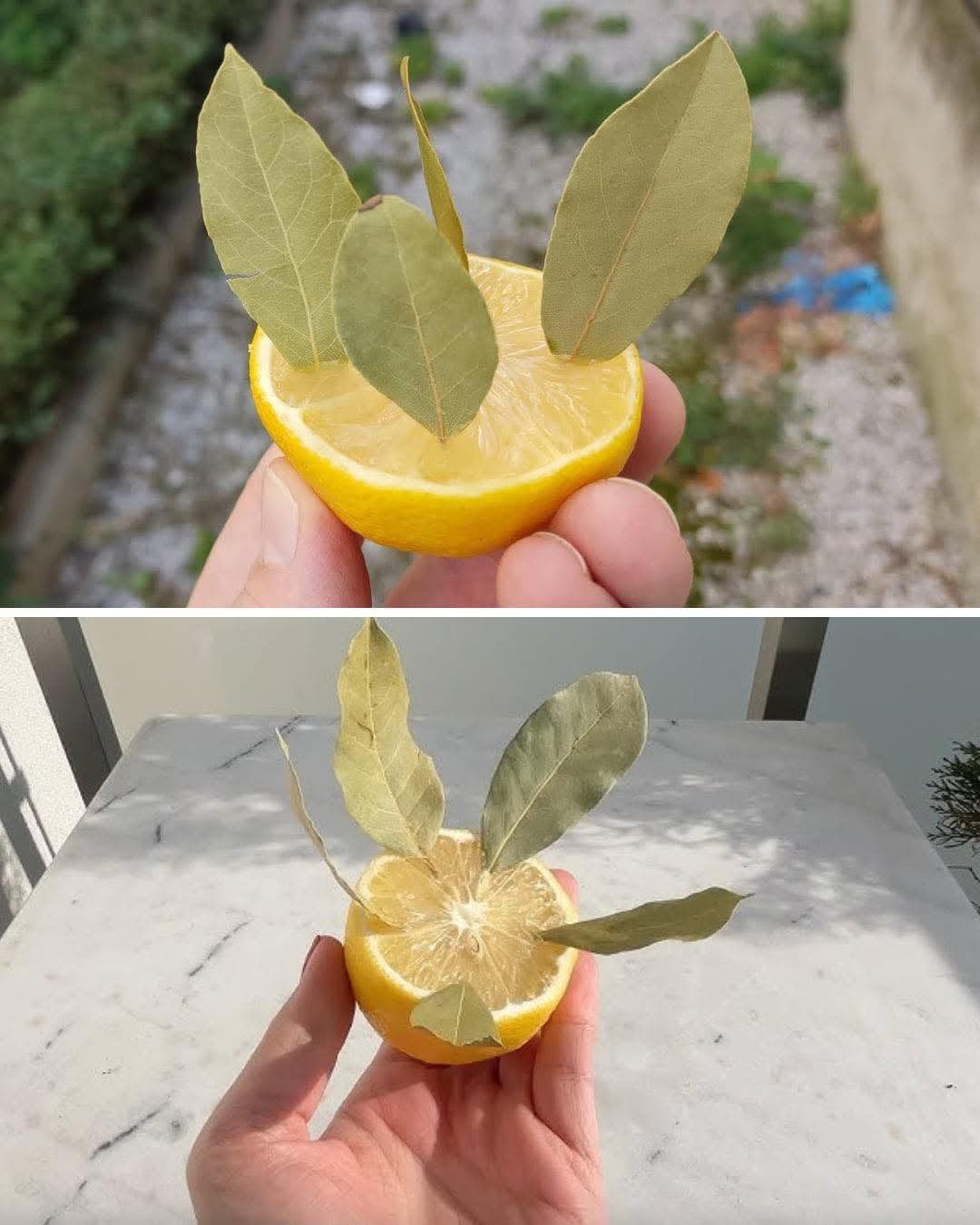 Anwendung: Legen Sie die Zitrone mit dem Lorbeerblatt in die Nähe von Fenstern, Türen oder Vorratskammern, um Insekten fernzuhalten.