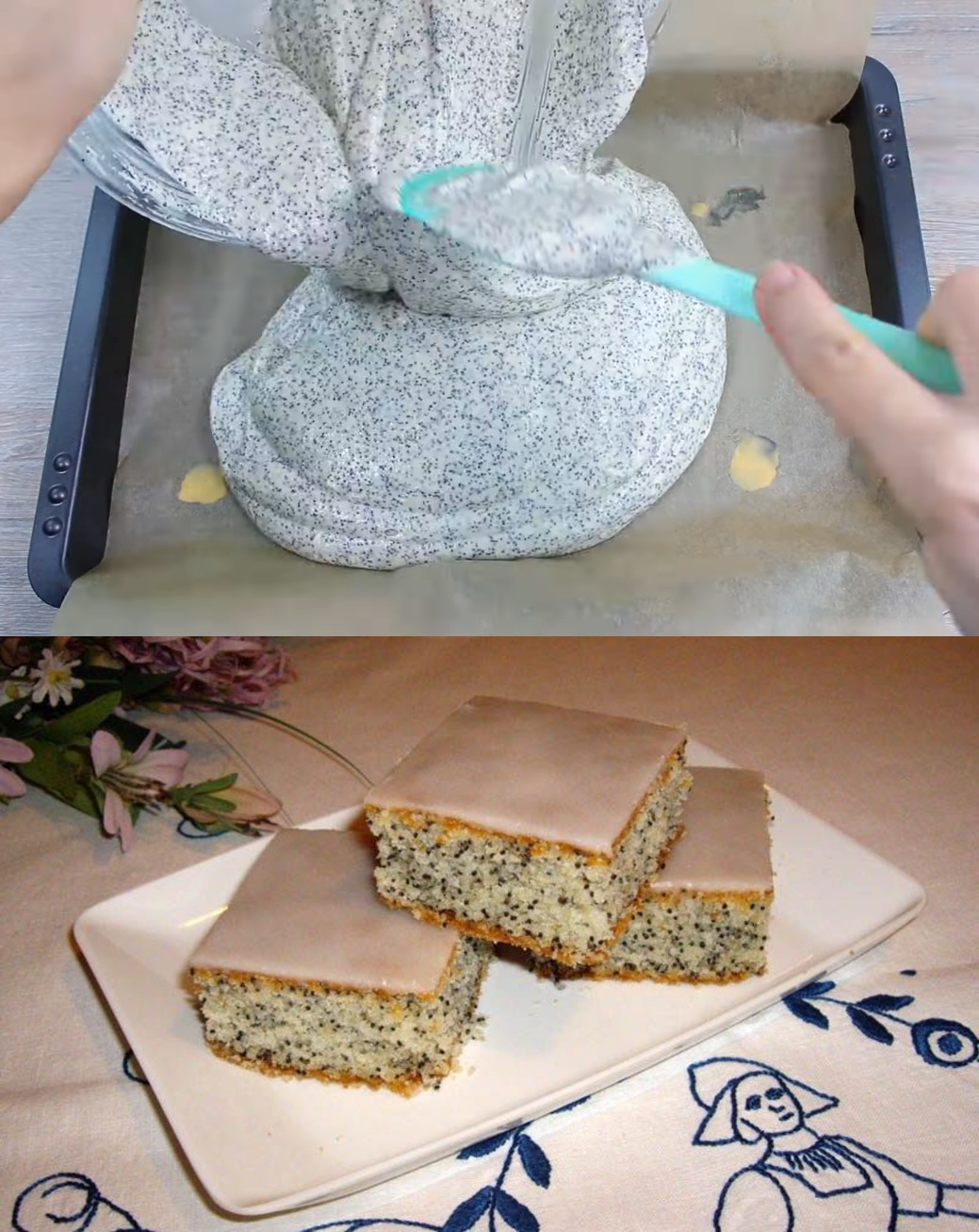 1. Einfach mal Eigelb mit Zucker schaumig rühren. Quark dazugeben und verrühren. Danach Milch, Öl und etwas Rum oder Rum-Aroma hinzufügen. Jetzt Mit Backpulver vermischtes Mehl und Mohn untermischen.